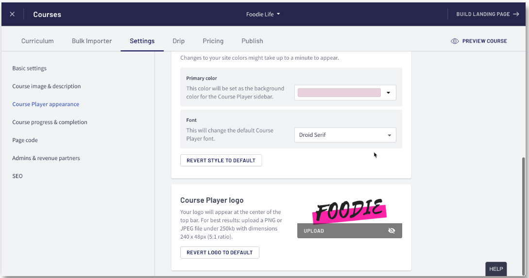 Another plus is templates. Thinkific continues to add new ones (from fitness to DJ courses), so you’re not stuck with a generic look. The redesigned course player also feels more modern than Teachable’s, with improved branding options, including logos.