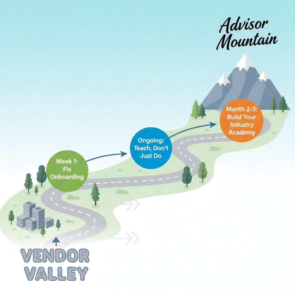 - Audit your current onboarding (be honest — does it scream vendor or advisor?)